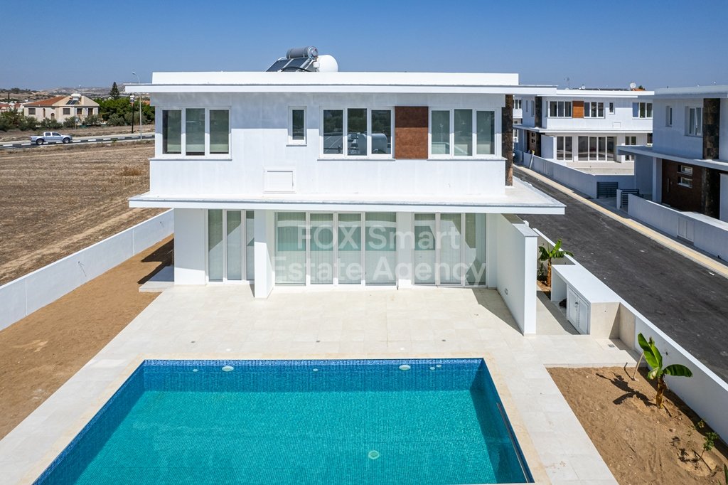 Located in a quiet area on the Larnaca Dekelia road and walking distance to the beach. In an area with all necessary amenities and easy access to the highway. This property is a 2 storey detached villa with modern design, high quality construction standards and electrical provision for Smart Home system. Perfectly positioned with south orientation benefiting of the cool sea breeze during the summer months and beautiful sunshine. Configured with open plan kitchen/living area, guest wc, on the g...