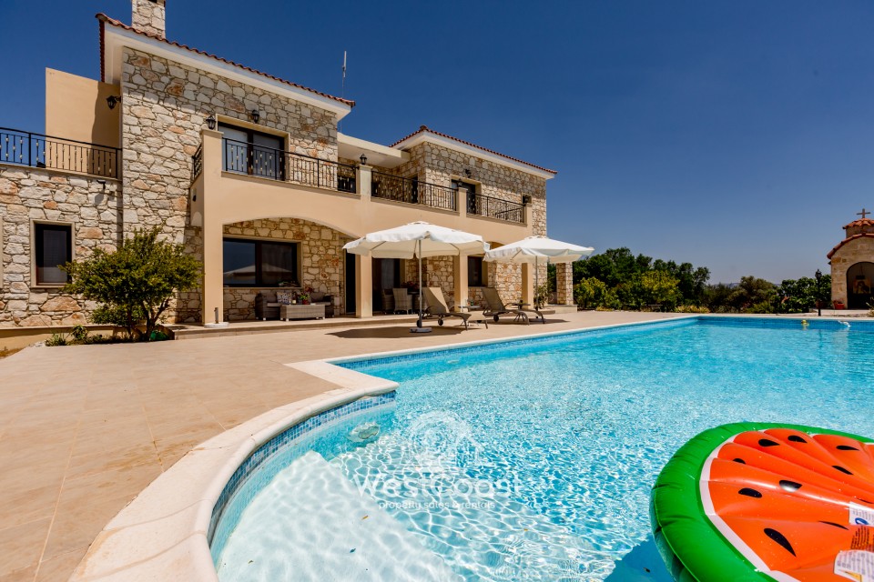 This traditional styled detached villa is located on a large plot in the heart of the Thrinia Area. The location of this property is close to the local village which has all amenities with a traditional atmosphere, bars, restaurants and is only a 40 minute drive to the International Airport and Paphos Town Center. This property has a gated driveway with private parking, and has a low maintenance garden area that surrounds the property and boasts the large infinity pool. Entering into the detache...