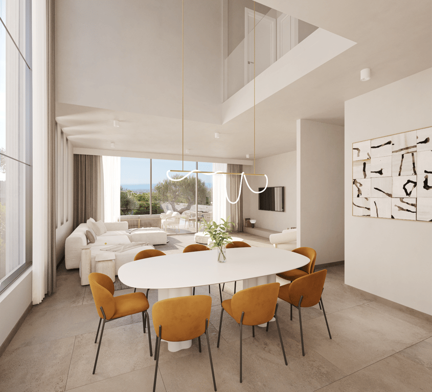 PRICES FROM €470,000 + VAT This exclusive collection of 17 two-storey houses offers a selection of 3 and 4-bedroom residences, each featuring 4 bathrooms and sprawling across large plots of up to 850 sq.m. The properties offer the option of roof gardens and overflow swimming pools, adding a touch of luxury to the serene surroundings. The modern architectural design blends seamlessly with the natural environment, creating spacious and efficient interior spaces. The location is exceptional, prov...
