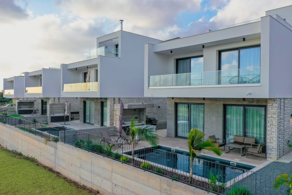 This stunning four-bedroom detached villa in Geroskipou is a harmonious blend of modern design, smart living, and Mediterranean charm. Set across two levels, the home welcomes you with light-filled interiors, clean lines, and open-plan living areas that flow effortlessly out to the landscaped garden and private swimming pool. The kitchen is sleek and functional, ideal for both entertaining and everyday living, while underfloor heating and energy-efficient split-unit cooling systems ensure year-r...