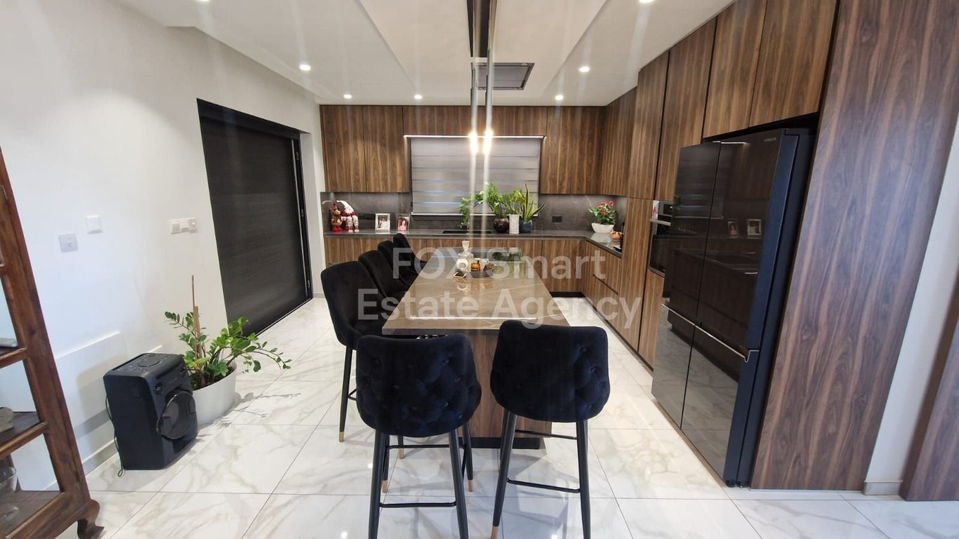 An exceptional opportunity to own a luxurious detached villa in Ypsonas, sitting on a 425 sq.m. plot in a tranquil cul-de-sac next to a green area. Built in 2018 by the owner for personal use, the villa boasts premium materials and high-end finishes, including sliding doors inside walls, hidden lighting, 8mm thermal insulation, marble countertops, and a fireplace with fans for efficient heating. The ground floor features an open-plan living space with a luxurious dining area, complemented by a ...