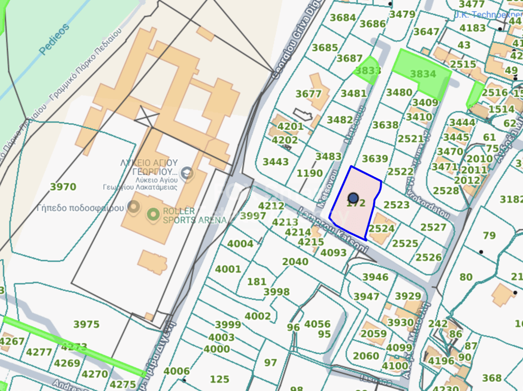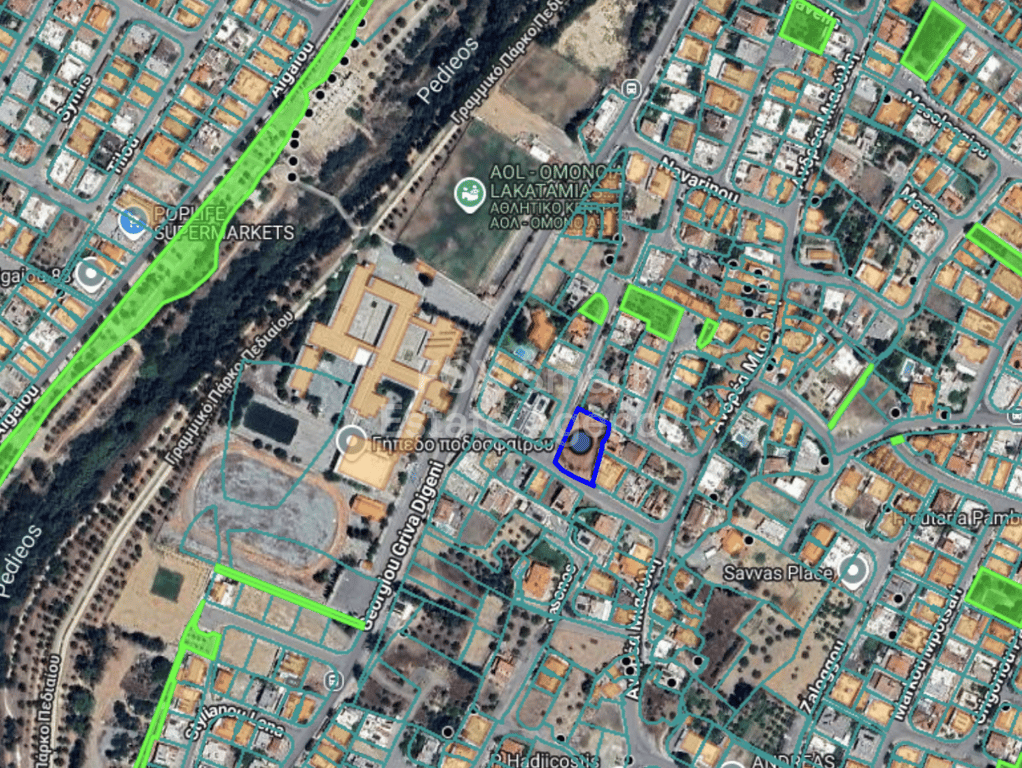 - **Location**: - Situated in a desirable area in Lakatameia near Pedieos linear Park and Agios Georgios Lyceum . - Walking distance to supermarkets, public schools, and shops. - Close to all essential amenities. - **Residential land Characteristics**: - Total area of 1,310 square meters. - Lies within the Ka6 residential zone. - Building density of 90%. - Coverage allowance of 50%. - Permission to construct up to 2 floors. - Maximum building he...