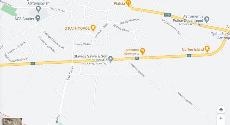 For sale residential land 2973 sq.m in Astromeritis with a right of passage 3.66 meters wide. It lies within the residential zone H2 with 90% building density, 50% coverage ratio, with allowance for two floors building with 8.3 meters height. Πωλείται οικιστικό χωράφι στον Αστρομερίτη 2973 τμ με δικαίωμα διάβασης 3,66 μέτρων. Εμπίπτει στην οικιστική ζώνη Η2 ΜΕ 90% συντελεστή δόμησης, 50% ποσοστό κάλυψης με δυνατότητα για 2 ορόφους κτίριο με ύψος 8,3 μέτρα.