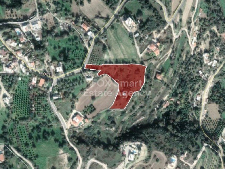 The property for sale is a residential field which lies within the administrative boundaries of Choli village, in Paphos District. It has an irregular shape and an even surface. It abuts onto a public registered road along its north western boundary with frontage of approximately 10 meters. Furthermore, the property enjoys a nice view of the surrounding area. It falls within the Residential Zone H2 (94%), having building density coefficient 90% and within the Protected Zone Z3 (6%) having buil...