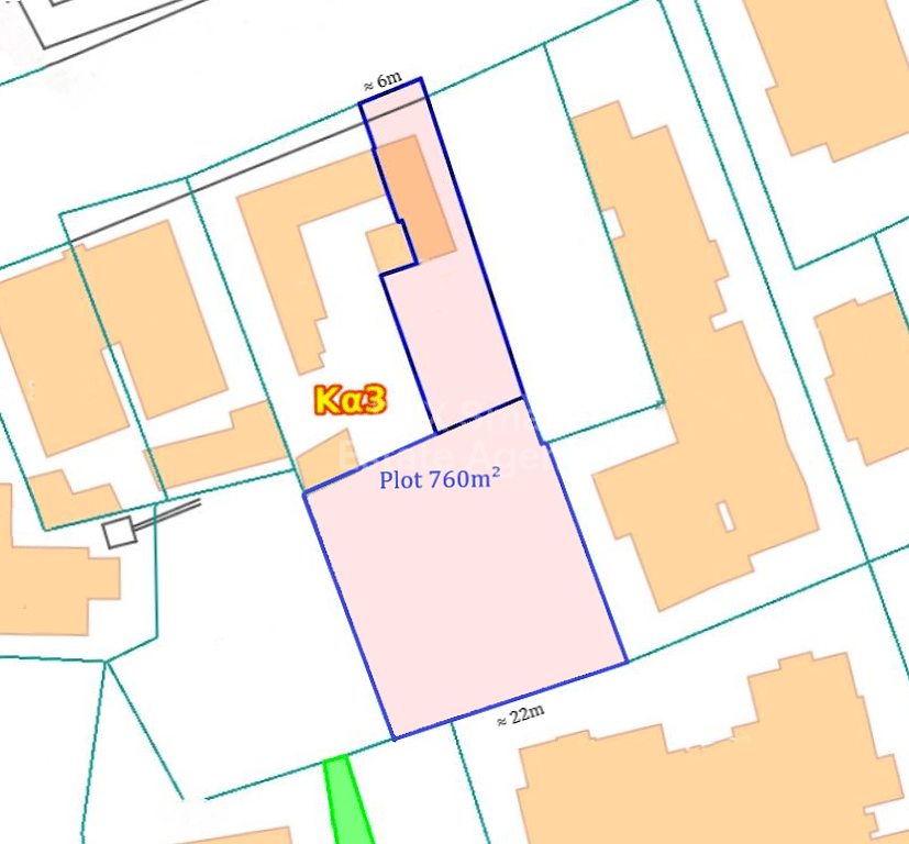 2 adjacent Residential plots of 760m2 total area, in Chrysopolitissa, Larnaca. The plot is in zone Ka3 with building density 140%, coverage 50%, 4 floors allowance and has frontage on 2 roads, with the back road being a cul de sac. It is prime located within walking distance to all the amenities and services (public and private schools, supermarkets, pharmacies etc.), Finikoudes and Larnaca center. 2 separate Title Deeds available. No VAT. For more information you can contact us.