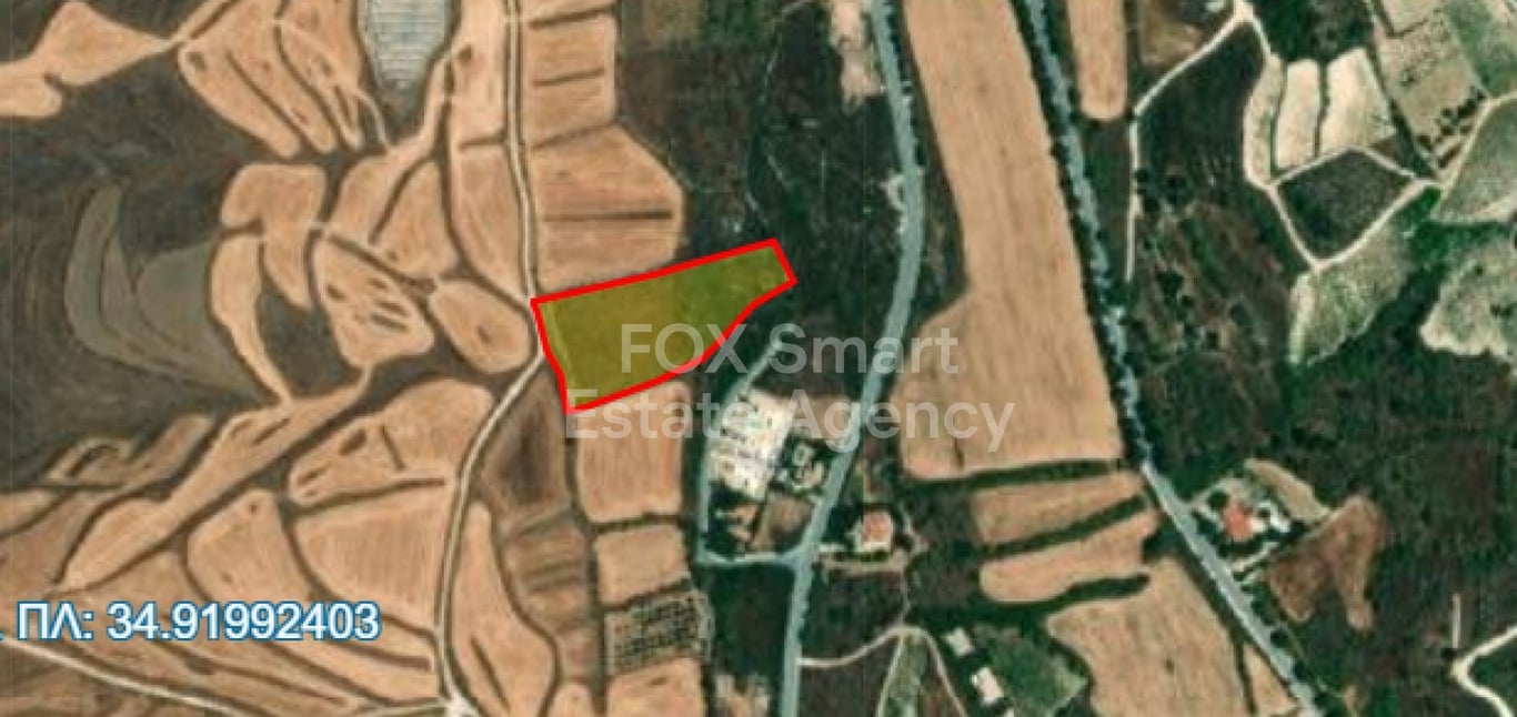 Field in Kathikas village. The size of the land is 7358 square meters. Building density is 30% and the coverage is 20%. You are allowed to build 2 floors with maximum height 7 meters. It has regular shape.