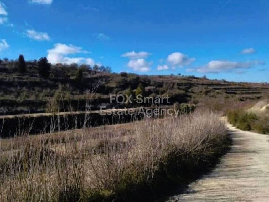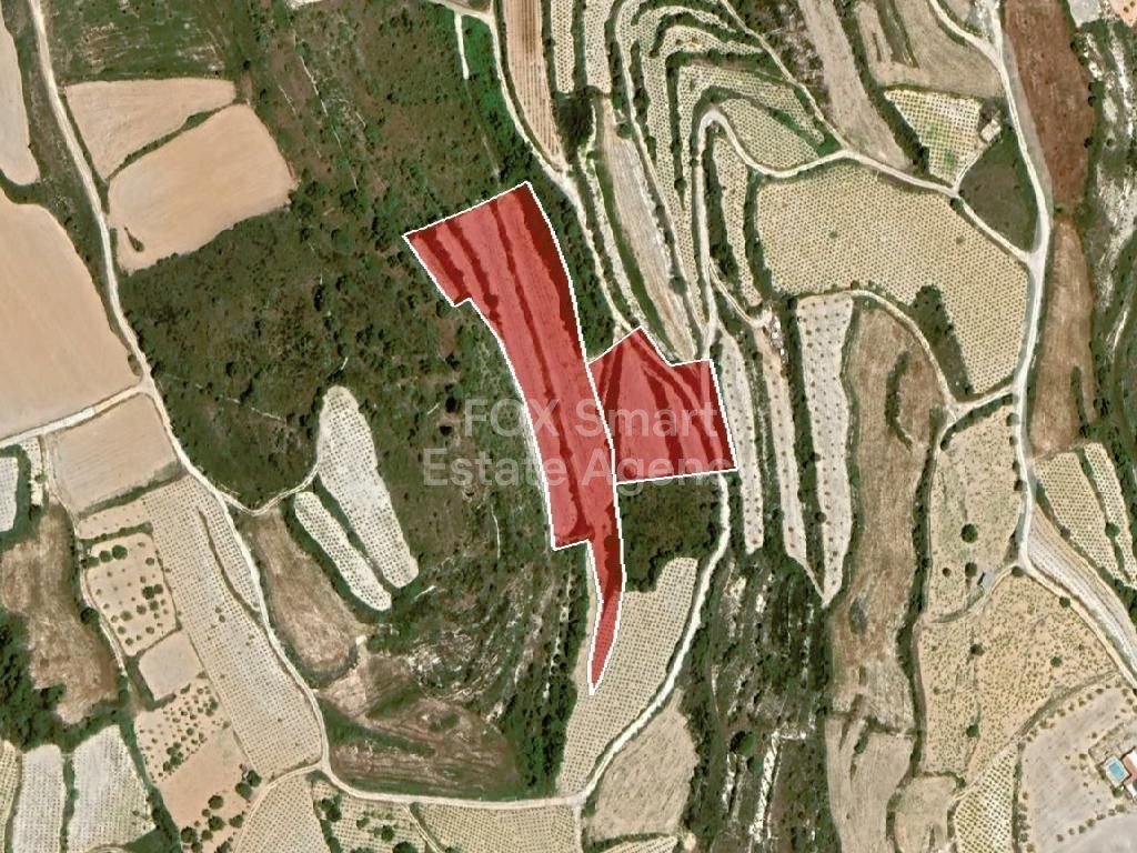 This property for sale includes two adjacent agricultural fields in the Kathikas community of Paphos. It is located very closed to the community center. The land is irregularly shaped, sloped, and accessible via an unregistered road. It is classified as part of a Protection Zone (Δα1) and an Agricultural Zone (Γα4). The fields are about 310 meters from the nearest residential area. The total area for sale is 13,156 sqm, and the properties are sold together as one unit.