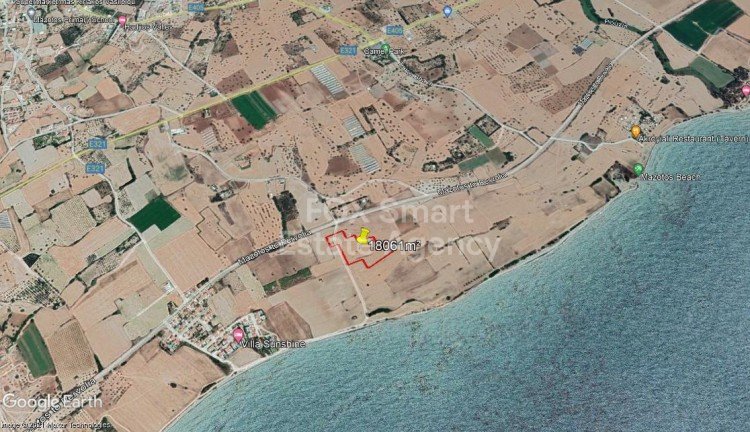 Tourist Land of 18061m2 For Sale in Mazotos. The property is in T2a zone and is suitable for up to 3 floor buildings, with 45% building density and 20% building coverage. Just 200m and a short walk from the beach. Ideal for development.