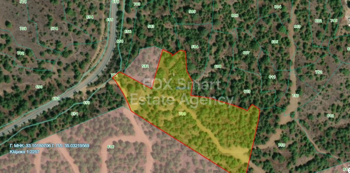 Location: - Situated in Mitsero village. - 25 meters from the main road. Land Characteristics: - 20,660 square meters. - Nestled inside a lush forest. - Accessible from a nearby road. - Fertile soil suitable for various types of agriculture. - Gently sloping terrain ideal for farming and irrigation. - Natural water sources potentially available. Advantages - Special Features - Close proximity to the road for easy access. - Secluded and peaceful environment within the forest. - Ample space for l...