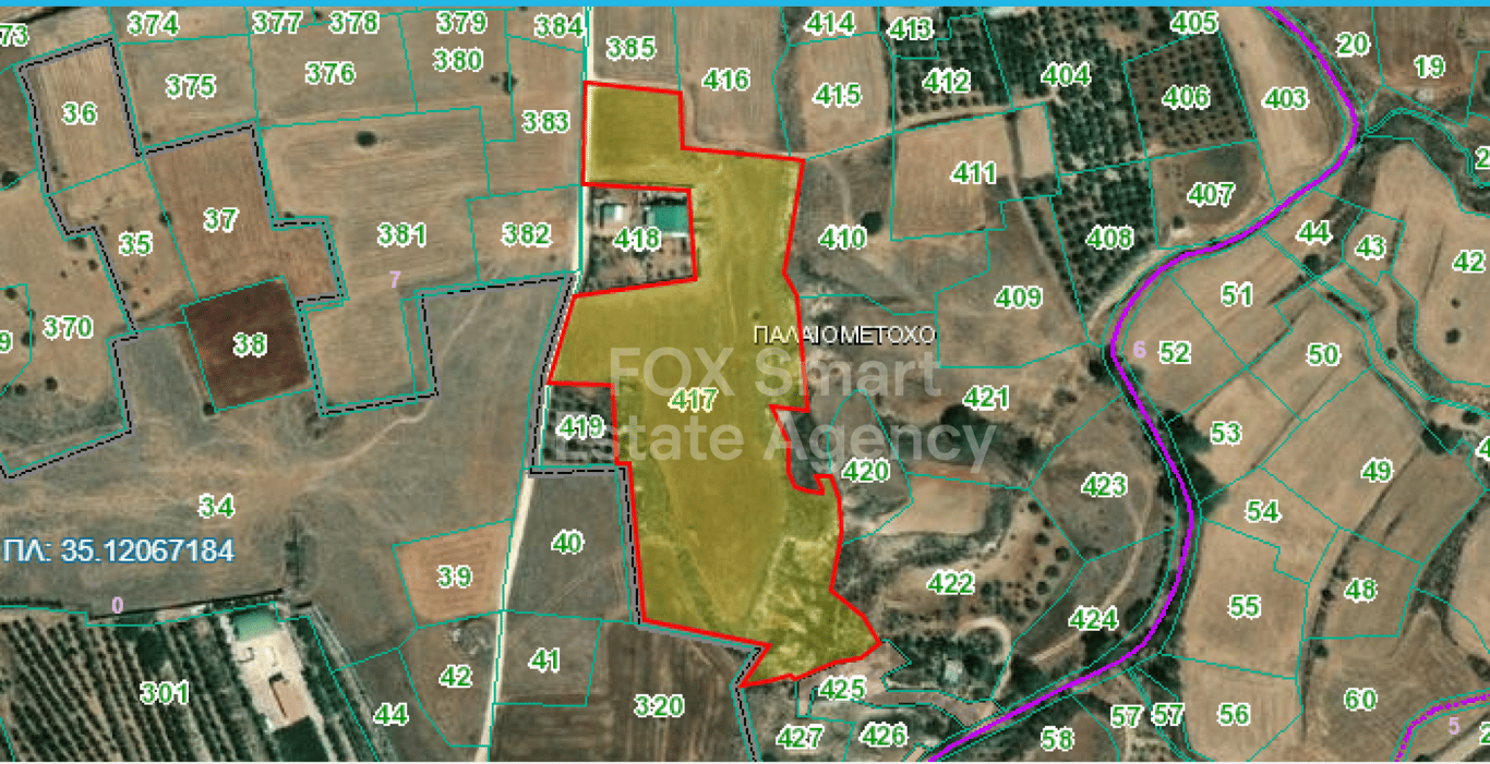 Agriculture field of 1373 sq.m. in Paliometocho, NicosiaLocation. Paliometocho.. Out of the village, on the way to Meniko.Land Characterestics. Flat surface land with a total area of 20922 sq.m.. An irregular shape that intersects in two sides of the village agricultural road . Residential zone G3 with a building density of 10% and a coverage ratio of 10%.Advantages - Special Features. Close to the village.. Ideal for agricultural development.