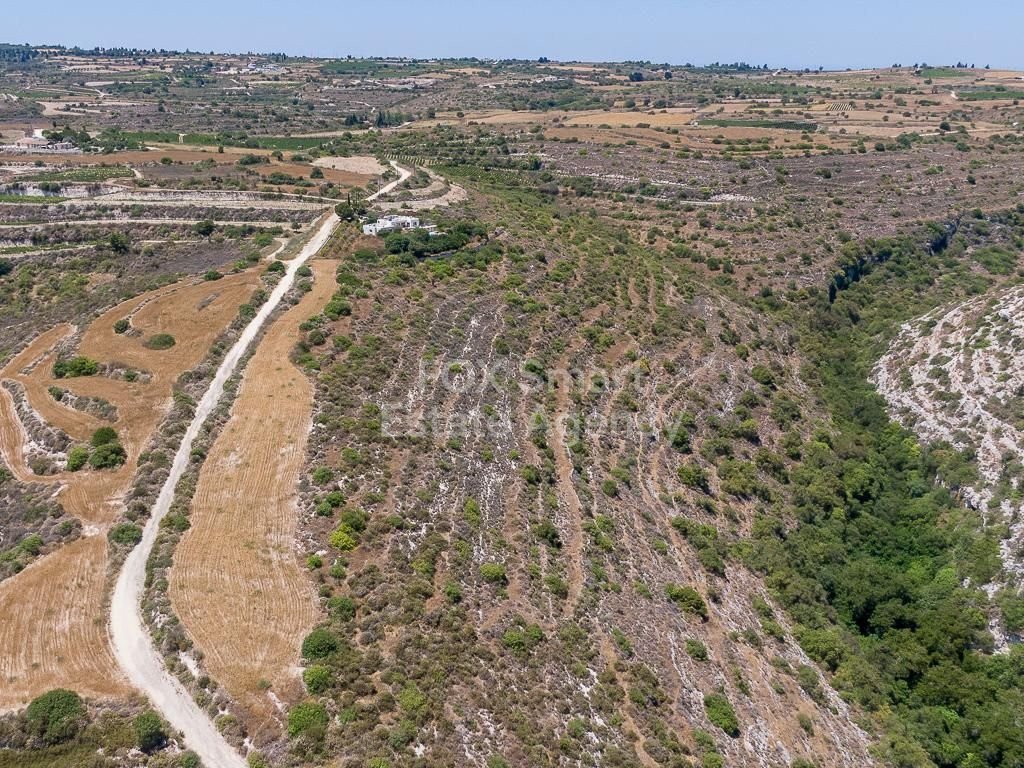 Agricultural land located in the Arodes area of Paphos, offering a peaceful rural setting with easy access via a registered public road on both its eastern and western boundaries, totaling approximately 130 meters of road frontage. The field has an irregular shape with a sloped terrain and lies mostly within the Agricultural Zone (Γα2 – 98%) with a building density of 6%, and a smaller portion within the Protection Zone (Δα1 – 2%) with a density of 0.5%. It also falls within a land consolidatio...