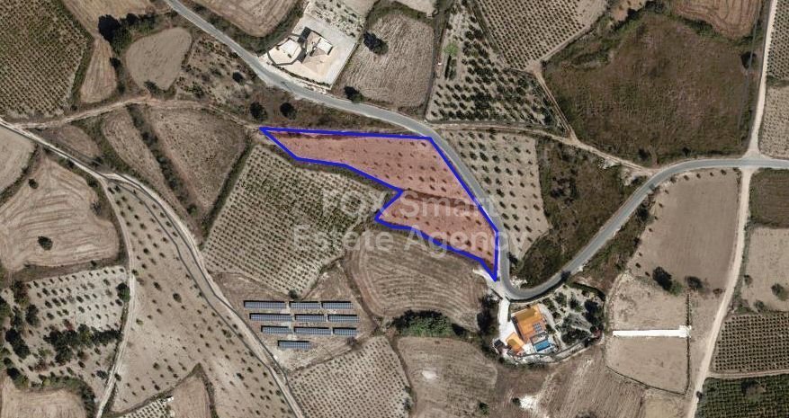 An agricultural land in Stroumpi village, Paphos district The property adjoins a public road with a frontage of approximately 90m and has a flat surface Suitable for a photovoltaic park Less than 200m away from the residential zone