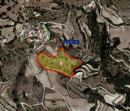 Land located in Polemi, Paphos, Cyprus. The size of this property is 17257 and there is a register road. It falls into Γ3 agricultural zone. The building density of this land is 10% and coverage 10% You are allowed to build 2 floors with maximum height 8.3 meters. Polemi is a village in the Paphos District of Cyprus. The village is located within the rolling landscape of the Paphos hills at an altitude of 463 metres (1,519 ft) above sea level.Polemi has a mild climate with temperatures gener...