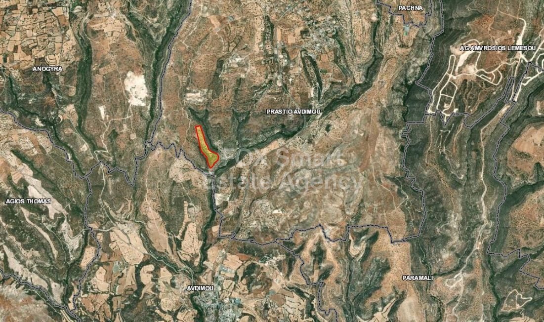 Land for sale 62877 square meters in the village of Prastio Avdimou. Main characteristics: - Next to residential zoning with electricity network - Easy access to nearby villages and 100M away from main road to Limassol & Paphos Nearby landmarks: Waterfall of Prasteio Avdimou: 1KM Golf course: 5KM Beach: 6KM Limassol center: (20 mins) Paphos airport: (25 mins)