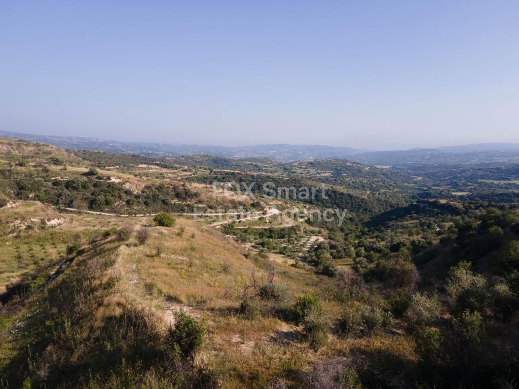 Plot in Psathi community, in Paphos District. It is situated at a distance approximately 220 meters east from the community’s center. It has an irregular shape with a sloping land surface. According to the Cadastral plan the property abuts onto a registered road along its northern boundary with a frontage of approximately 4 meters and onto a registered pathway along its western boundary. The property falls within the Residential Zone H3 (56%) having building density 60% and within the Agricultur...
