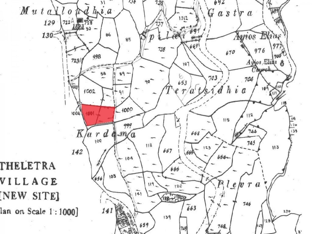 Residential field in Theletra community, in Paphos District. It is situated at a distance approximately 300 meters north from the community’s center and approximately 1.6 kilometers west from the connection road Giolou – Stroumpi. It has an trapezoid shape with an even land surface and abuts onto an under registered road along its eastern boundary with a frontage of approximately 30 meters. The property falls within the Residential Zone (H2) having building density 90%.