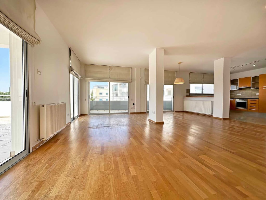 The building is located on a cul de sac, and opposite a green area. Its location is in close proximities to key amenities, like Alphamega, Akropolis, Athalassas Avenue, and Akropoleos Avenue, and has direct access to the city centre and the Limassol highway. The apartment has large living/ dining areas overlooking the verandas, a completely fitted kitchen with electrical appliances, and granite worktops, 3 large bedrooms, the master bedroom with an en-suite shower, and an extra bathroom. There i...