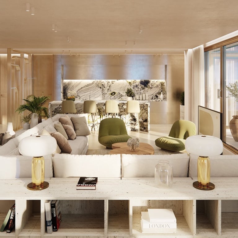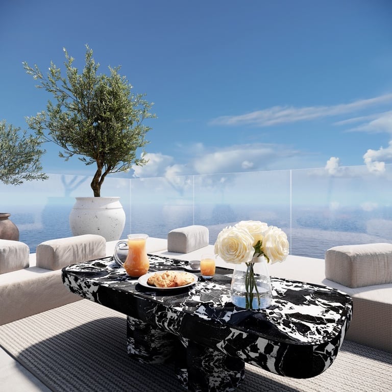 A spectacular 4 bedroom penthouse set across the highest floors, offering the most opulent interiors and sweeping views across Limassol and the Mediterranean. Inspired by Art Deco elegance and designed by Parisian aesthete Thierry Lemaire, the apartment blends marble, wood, and warm metallic accents, with open plan living that flows onto multiple terraces, a private roof garden, and a private pool. Rooftop spaces are designed for both relaxation and entertaining, featuring alfresco dining and a ...