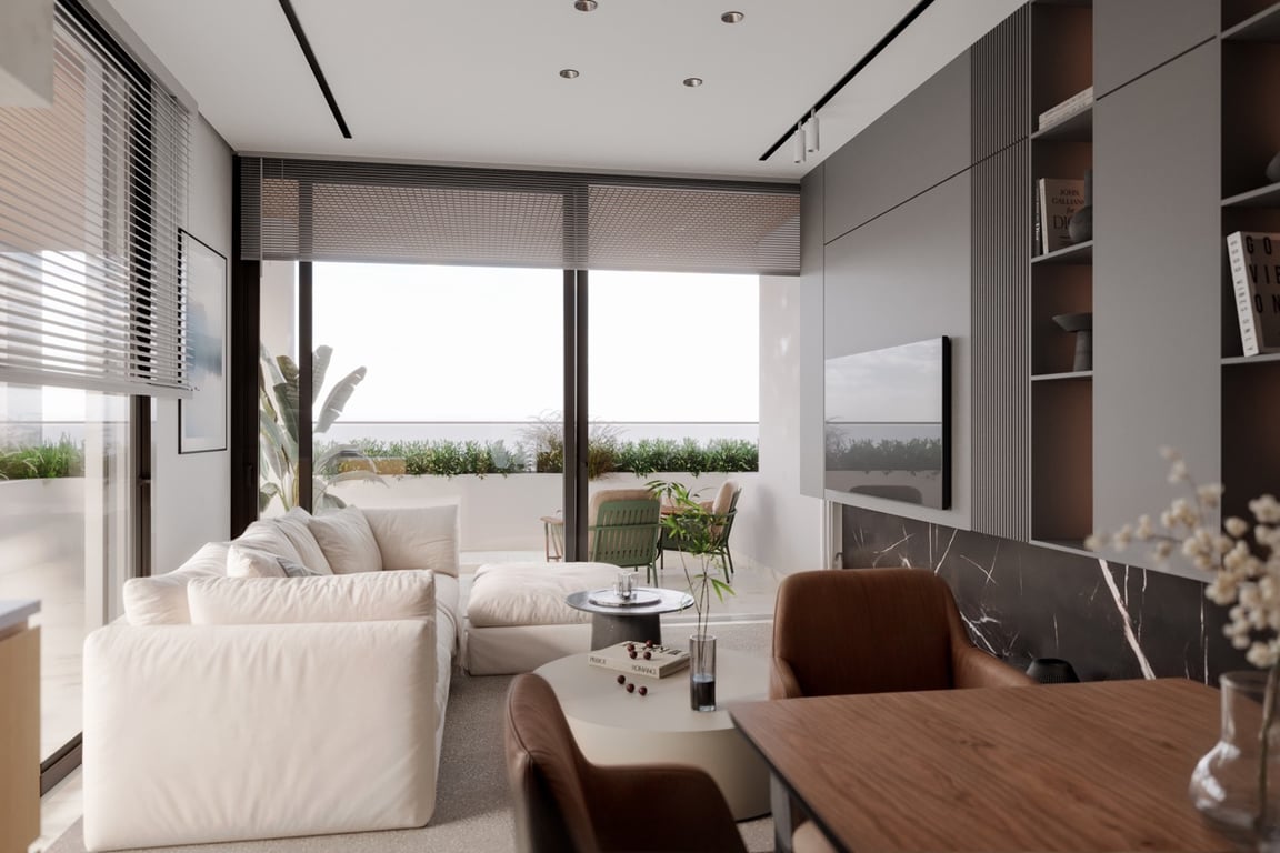 Elevated above the city, this penthouse offers a refined expression of Nordic inspired design, blending minimalist elegance with a sense of calm and openness. Thoughtfully laid out with 2 bedrooms, 1 flexible additional room, and a spacious roof garden, the residence invites natural light into every corner through expansive glazing and open plan living areas. Warm, natural materials such as wood, stone, and glass create a soothing, tactile environment that feels both grounded and contemporary. T...