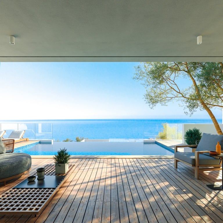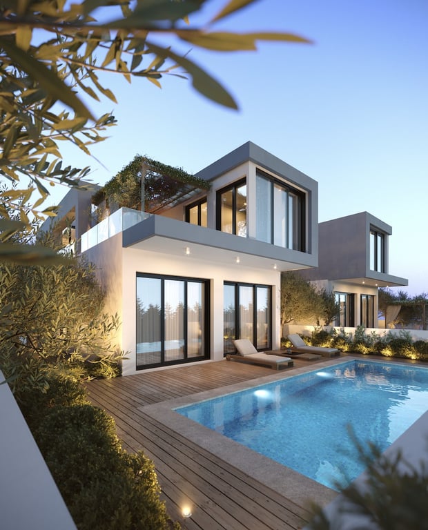 A unique project just a stone through away from the village of Kissonerga. The properties of this project offer beautiful unobstructed sea views and they are only a 5 minutes walk to the nearest beach. The project comprises of bungalows and villas with spacious land. Moreover the new owners will have the option to choose from an optional swimming pool and roof garden. Villas will offer 3 beds minimum, 3 bathrooms and a guest toilet. Price+VAT