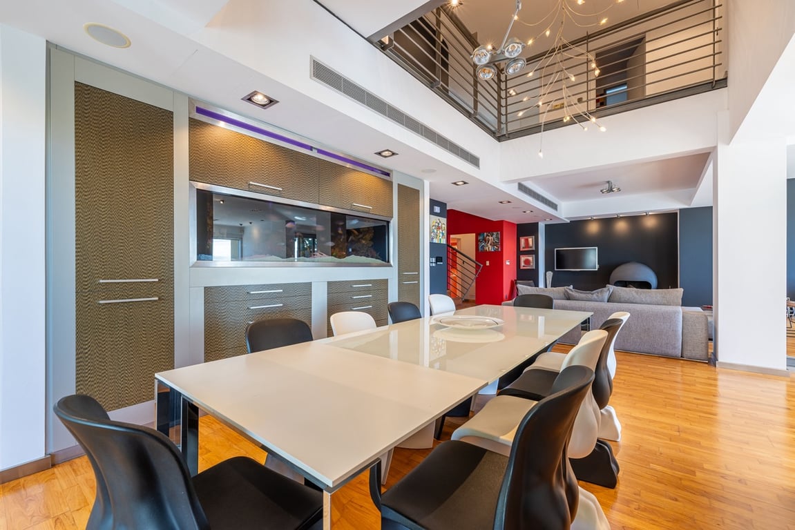 Located in the prestigious area of Ayia Fyla, this stunning 6-bedroom villa is set on a generous 646 m2 elevated corner plot and offers 483 m2 of internal space, along with 76 m2 of covered verandas and 263 m2 of uncovered verandas, showcasing uninterrupted city and sea views. Built across three levels, the home features luxurious details such as an aquarium, glass tunnel elevator, and a 10×4 m private pool. The ground floor boasts an expansive double living area with solid wood parquet, Italian...
