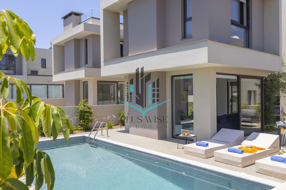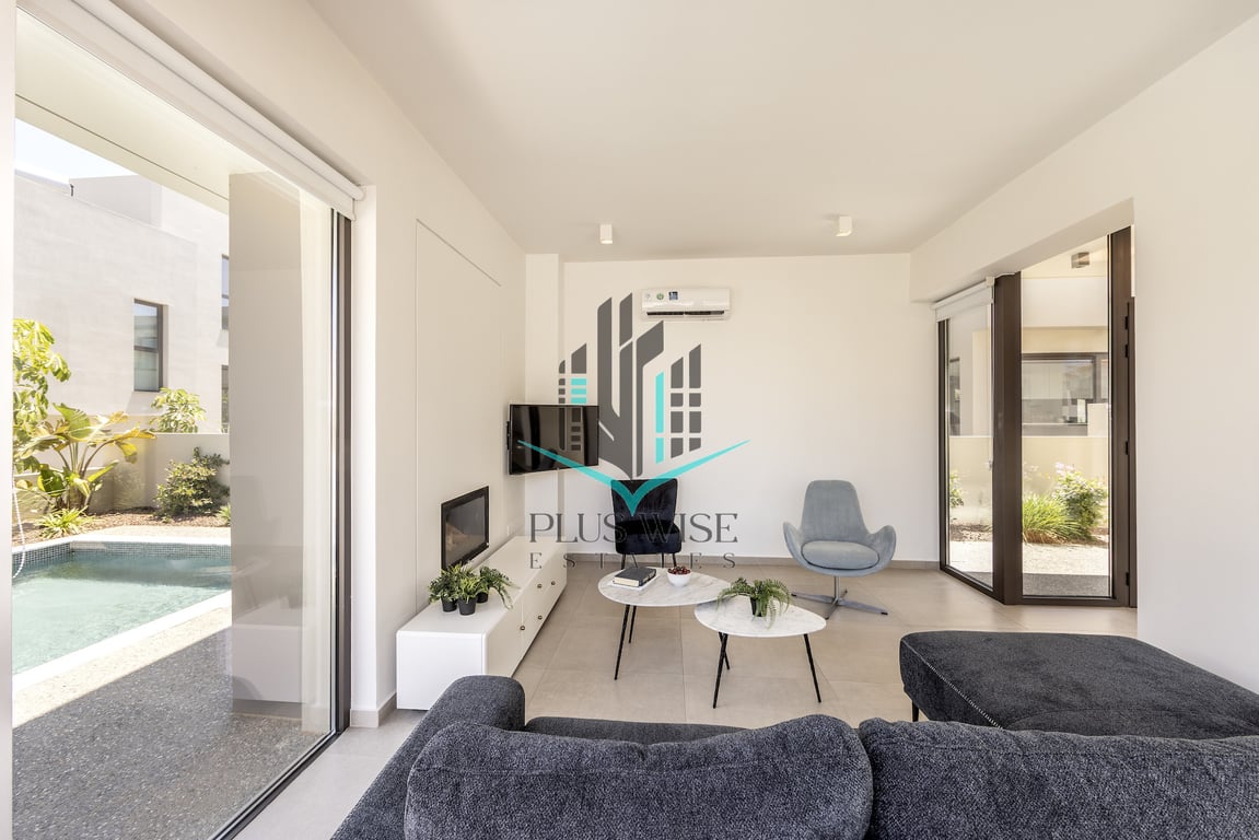 Beautiful modern 3-bedroom villa located just 300 metres from Malama Beach in Protaras. Built in 2021, the property features an open-plan design with natural wood and stone elements, large bedrooms, and floor-to-ceiling windows leading to a private garden and swimming pool. The villa offers 142.44 m2 of covered area on a 330.22 m2 plot, with 3 bathrooms, fitted kitchen and wardrobes, ceramic flooring, and double-glazed windows. A spacious roof garden (19.85 m2) provides sea views and an ideal s...
