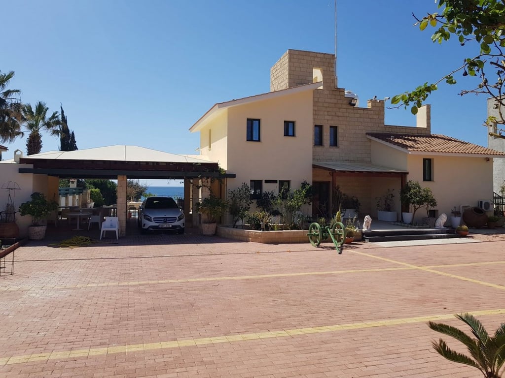 This magnificent six bedroom sea front villa is situated in the well know area of Sea Caves of Peyia. The location offers easy access to all amenities and services of the area and within short distance from the famous resorts of Coral bay. This delightful three story house is built on a large plot of land with stunning views, low maintenance mature garden and covered parking space for two vehicles. On the ground floor the property includes an open plan kitchen, dining and living area with fire ...