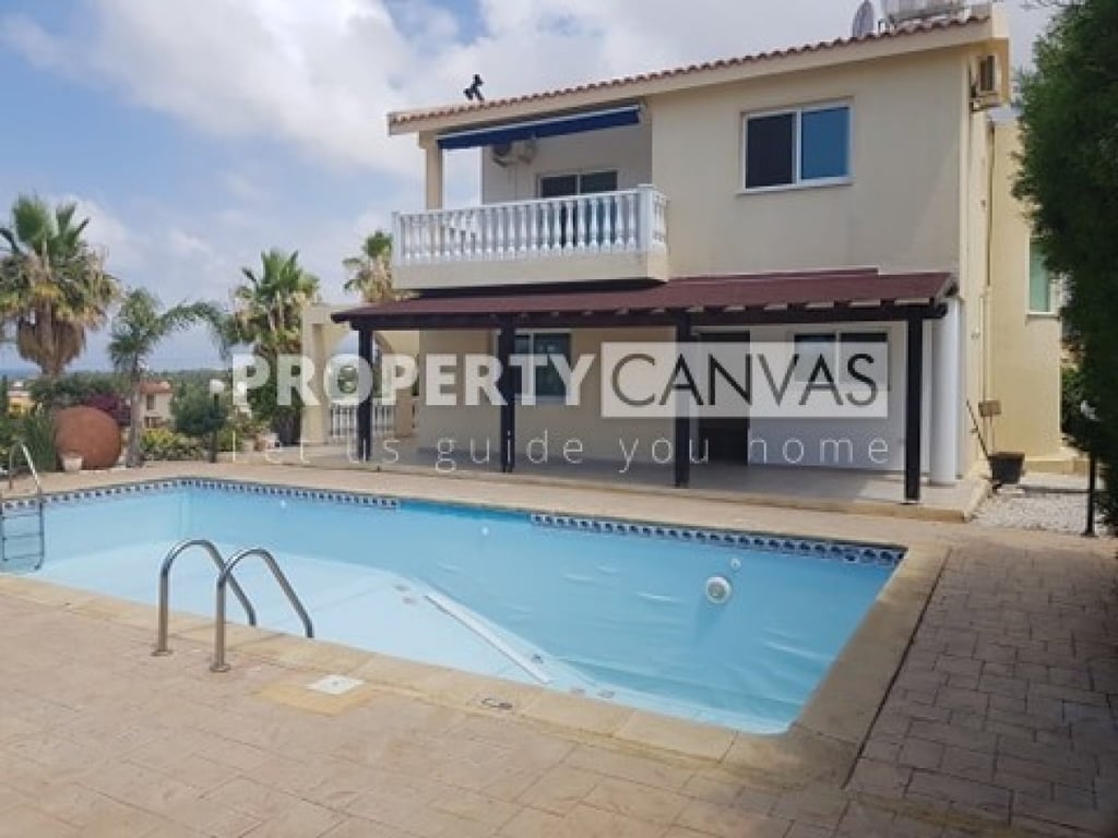 A prestigious three bedroom detached villa is for sale in the much sought after area of Sea Caves and only a short drive from Pafos town center and the resort of Coral Bay. This property is situated on a large plot and has the most amazing unobstructed sea views and has title deeds.The villa has a huge 5x10 private swimming pool surrounded by landscaped gardens, terraces and relaxation areas. The property is completely gated and is very private. The ground level has kitchen, living and dining...