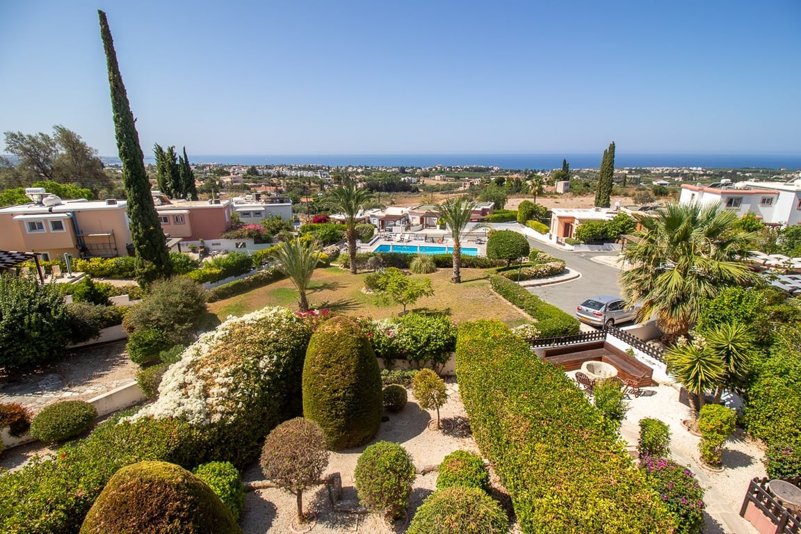 This detached villa is located in a quiet cul-de-sac at the start of Peyia village, a popular village with all amenities, a traditional atmosphere, bars, restaurants, and local celebrations. The property has private parking and a low-maintenance garden. The development also offers a spacious communal pool and a large covered veranda with lovely sea views. Inside, the villa has an open-plan living area that flows into the dining area and onto the veranda. The spacious kitchen has plenty of stor...