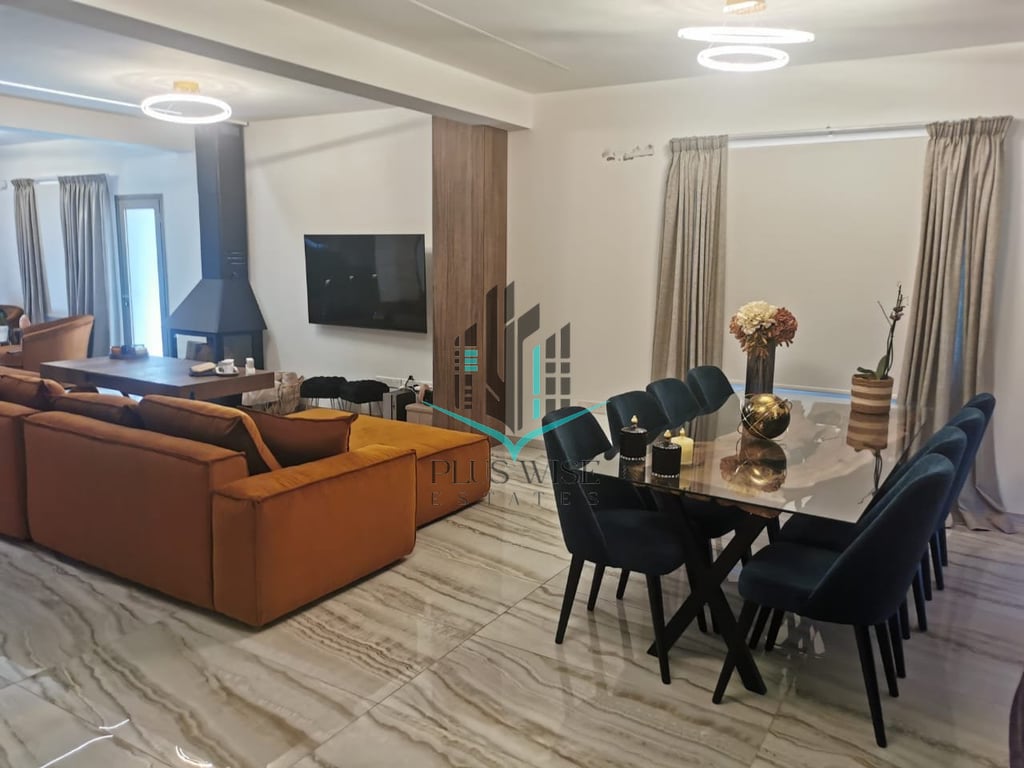 Elegant, Four Bedroom house in Psevdas, Larnaca. Located in a peaceful residential area, just a 16 km drive to Larnaca International Airport and 17 km to Larnaca City Centre. Offering both comfort and style, this property is designed for modern living. The house features a spacious open-plan layout, combining the living room and kitchen seamlessly. High-quality flooring runs throughout the house, adding to its elegant appeal. A striking three-sided fireplace serves as the centrepiece of the liv...