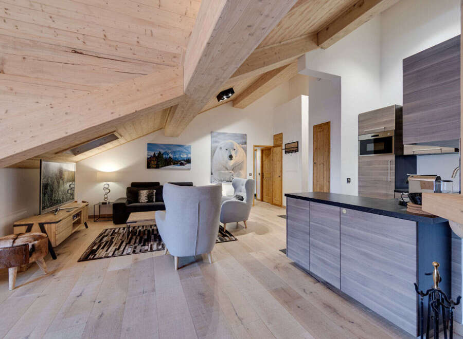 Discover this fully renovated apartment located on the top floor of the Les Sources de Marie residence. Ideally situated in the heart of the village of Arc 1950, you will be just steps away from the ski slopes and local amenities. The property features a living area with impressive ceiling height, an open-plan kitchen, and access to a newly renovated balcony facing southeast, allowing you to enjoy the sun all day long and offering breathtaking views of the Aiguille Rouge! The sleeping area compr...