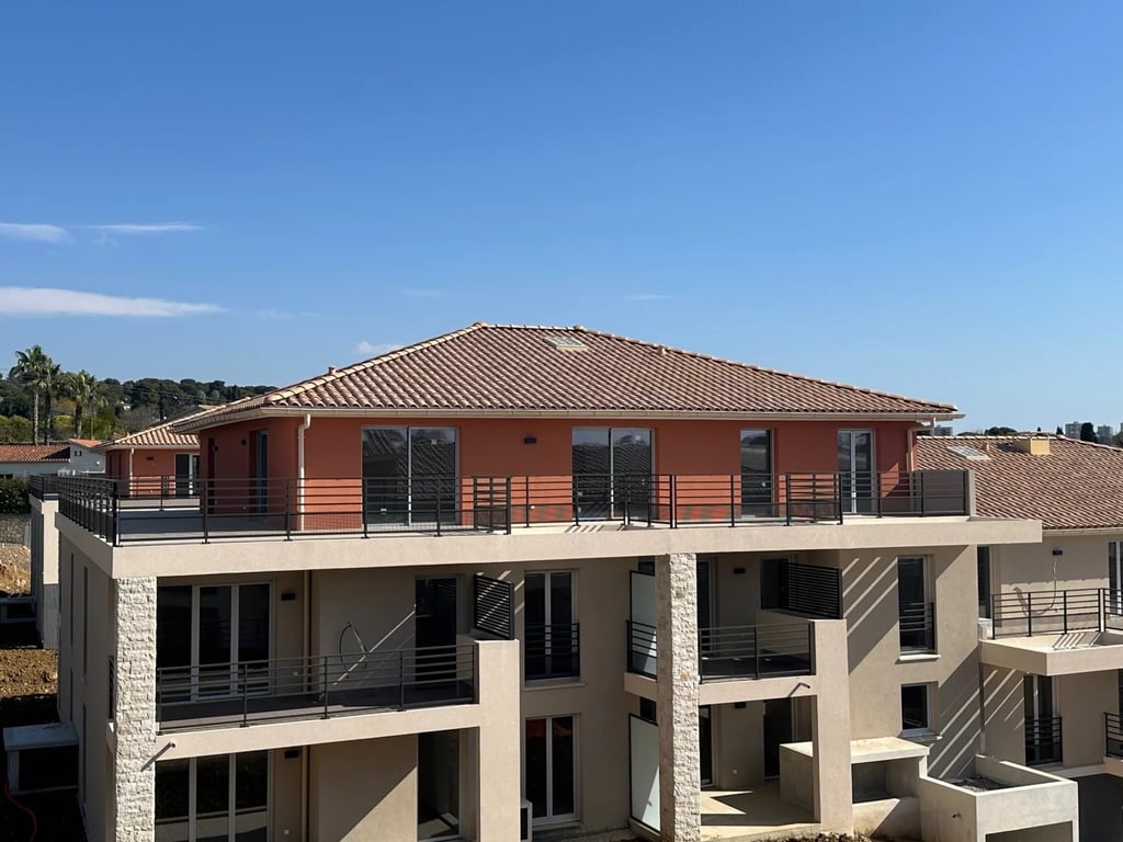 Golfe-Juan near Antibes, Alpes-Maritimes Between Cannes and Nice, minutes to lovely sandy beaches of Juan les Pins, elegant new development in sought after residential area surrounded by villas and apartments. 1, 2 and 3 Bedroom apartments available with large private terraces or gardens. 2 Bedroom apartments available, some with sea views, on the ground, 1st and 2nd floors. Beautiful 2 Bedroom 1 Bathroom apartment with private terrace with lovely views over the countryside, the hills. Ideal pi...