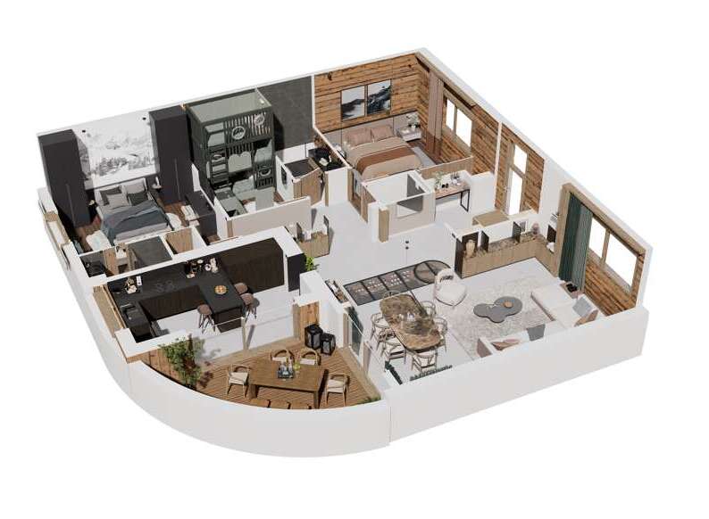 Located at the entrance to Chamonix, in the heart of the Pèlerins district, discover this new 115.6 m2 T4 apartment. It comprises an entrance hall with dressing room, a vast living-dining room with access to a spacious 17 m2 terrace facing south-west, a fully-equipped kitchen as well as a dormitory, a bathroom and two double bedrooms, one of which is en suite. The apartment benefits from large bay windows facing several directions, providing natural light and pleasant sunlight. An interior desig...