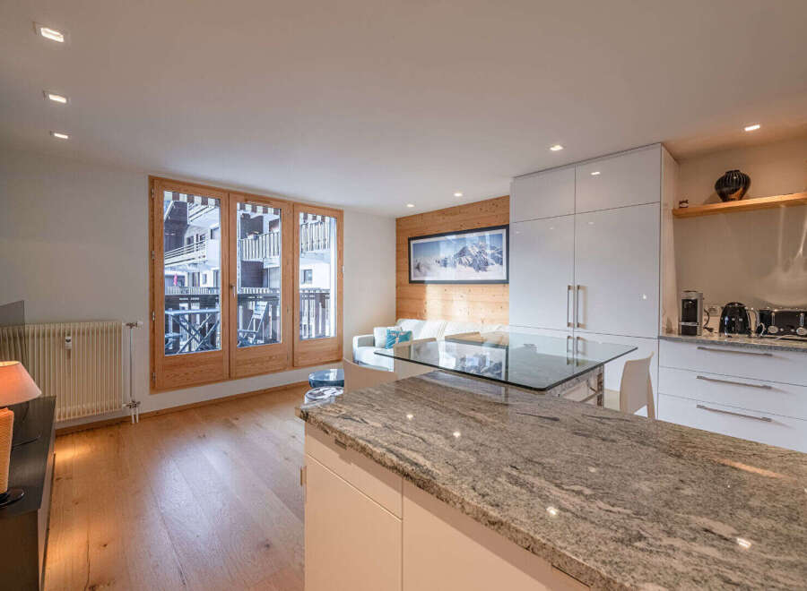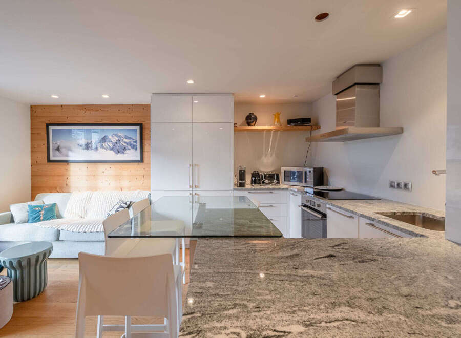 Located in a sought-after residence in the heart of Chamonix, this 38 sq apartment offers a functional layout and comfortable living space. It comprises a bright living room with a fully equipped open-plan kitchen, opening onto a bright lounge and its balcony, as well as a bathroom and a separate WC. The sleeping area includes a double bedroom with access to a large balcony. The apartment is sold with an indoor parking space, a cellar, and a ski locker. An ideal pied-à-terre just steps from amen...