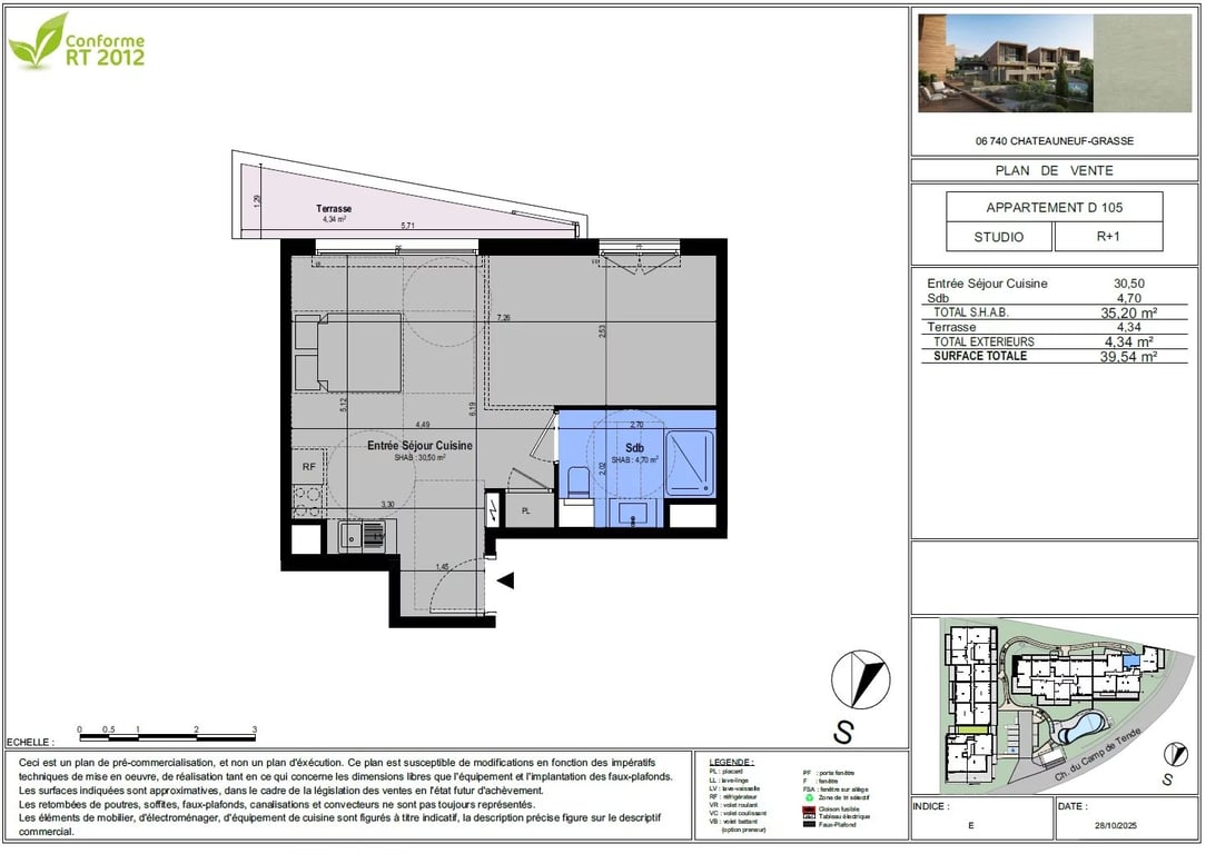 Chateauneuf de Grasse, opposite Golf Course, Alpes-Maritimes Exceptional location in the Golden triangle, Valbonne, Opio and Chateauneuf de Grasse, opposite the Golf Course of La Grande Bastide, a sought after area in the heart of Provence. New contemporary development with access to communal pool, parking, in the heart of the Provencal landscape. Off-plan studios, 1, 2, 3 & 4 bedroom apartments available with private terraces or gardens. This vast studio apartment offers a sleeping area and mo...