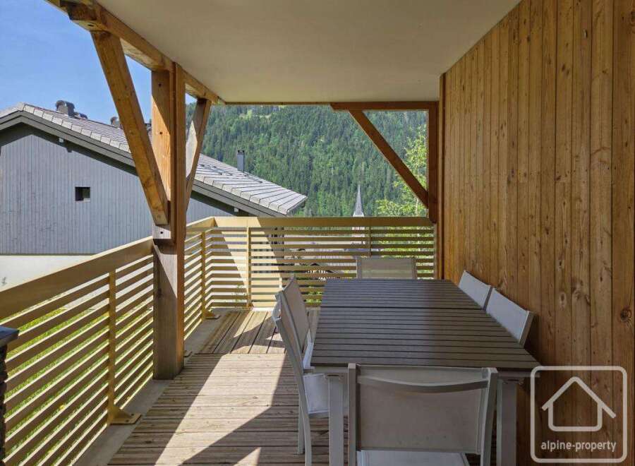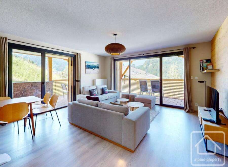 Appt. 12 in The View is an excellent, modern and spacious apartment located right alongside the Super Chatel piste, and very close to the centre of Chatel. Built in 2017, the property is in excellent order throughout and has an excellent energy efficiency rating. It is located on level “-3” and comprises; an open plan living, dining, kitchen area with fully equipped modern kitchen and access to the South and East facing balcony and terrace, entrance with storage cupboard, two double bedrooms, ...