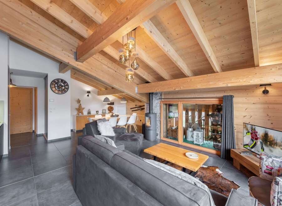 Set in a modern residence close to the centre of Chatel, this spacious two-bedroom flat will win you over with its cathedral ceiling, open-plan living area and west-facing terrace with magnificent views over the valley below. Within easy walking distance of the resort’s restaurants, boutiques and bars, the residence is just 300m away from the Super-Chtel ski lift allowing you easy access to the 650 km of slopes in the Portes du Soleil ski domain. Sold with two parking spaces, a bus stop for the ...