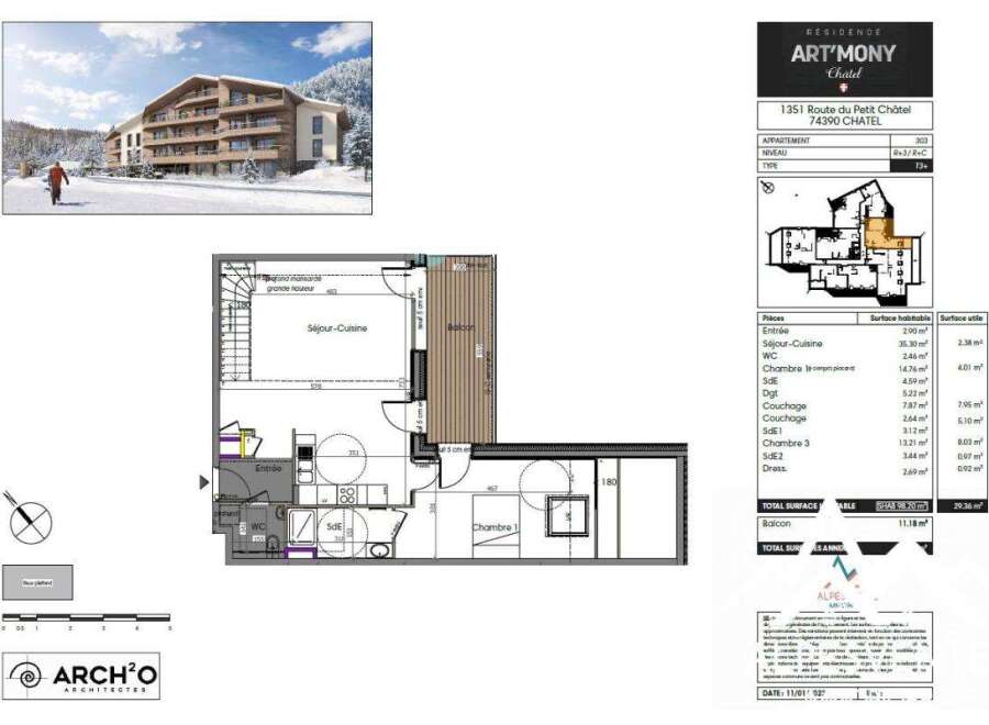 Nouveau programme neuf à Chtel ! La résidence ART'MONY bénéficie d'un emplacement exceptionnel sur les hauteurs du village avec un calme absolu. Profitez d'une vue dégagée sur les sommets du Chablais ainsi que d'une double voire triple orientation sud-ouest-est, pour des appartements très lumineux. Architecture de montagne, bois, pierre et enduit clair, la résidence s'intègre parfaitement au patrimoine bti de Chtel. Pour profiter de la station « skis aux pieds », les remontées mécaniques du Pet...
