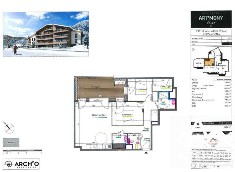 Nouveau programme neuf à Chtel ! La résidence ART'MONY bénéficie d'un emplacement exceptionnel sur les hauteurs du village avec un calme absolu. Profitez d'une vue dégagée sur les sommets du Chablais ainsi que d'une double voire triple orientation sud-ouest-est, pour des appartements très lumineux. Architecture de montagne, bois, pierre et enduit clair, la résidence s'intègre parfaitement au patrimoine bti de Chtel. Pour profiter de la station « skis aux pieds », les remontées mécaniques du Pet...