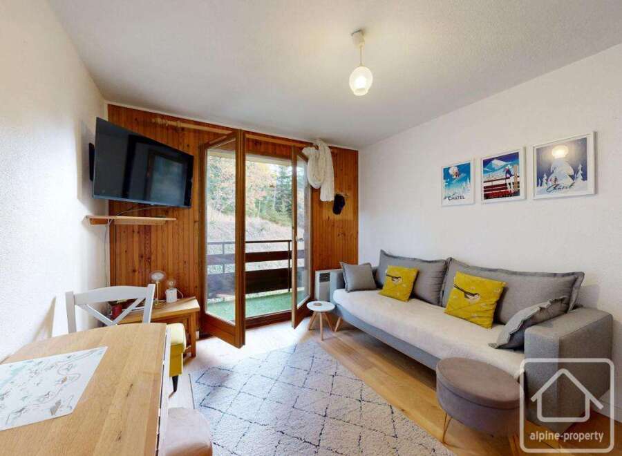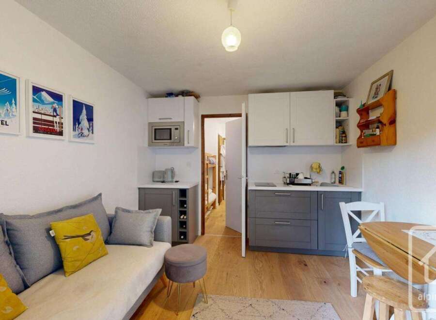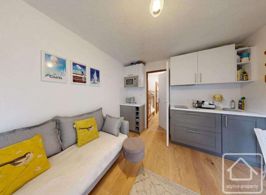 Appt. Yeti 6 no. 25 is a pleasant one bedroom apartment located in the desirable “Petit Chatel” area of the village. Built in the early 1980s, the building is well maintained and well located. The apartment is in excellent condition throughout and compromises an entrance with bunk beds in the “coin montagne” sleeping area, open plan living/dining area with kitchenette and balcony with views of the village, a double bedroom, a bathroom and a separate toilet. The property also benefits from a pa...