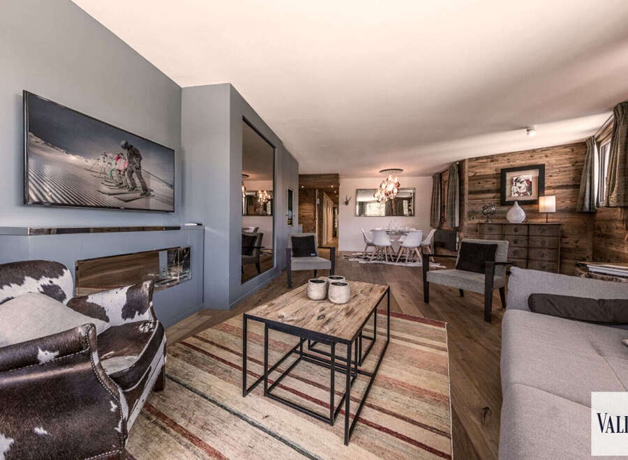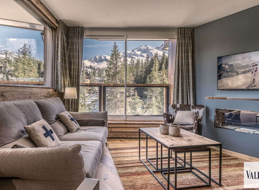 Superb apartment completely renovated in a contemporary and authentic spirit, on high-floor residence, and which benefits, thanks to its triple exposure, from magnificent views of the mountains and the ski slope which runs alongside the residence. You will appreciate the direct ski departure and return from the slope to the ski room. This quality property offers a bright and spacious living room, with a comfortable dining area and a lounge with TV and ethanol fireplace, all opening onto a south-...