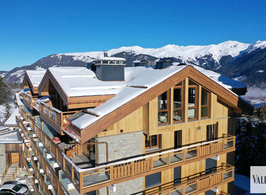 Between sky and mountain, Courchevel 1550 is the starting point for the wide open spaces of the Three Valleys and its 600 km of ski-in ski-out slopes. The ROOF residence houses this penthouse-style apartment. This 136 m2 apartment consists of a beautiful living space including a large 65 m2 living room and a fully equipped kitchen. It has a 16 m2 master bedroom with adjoining bathroom, two bedrooms, two shower rooms and a cabin bedroom. It also has 25 m2 balconies. It benefits from maximum sunsh...