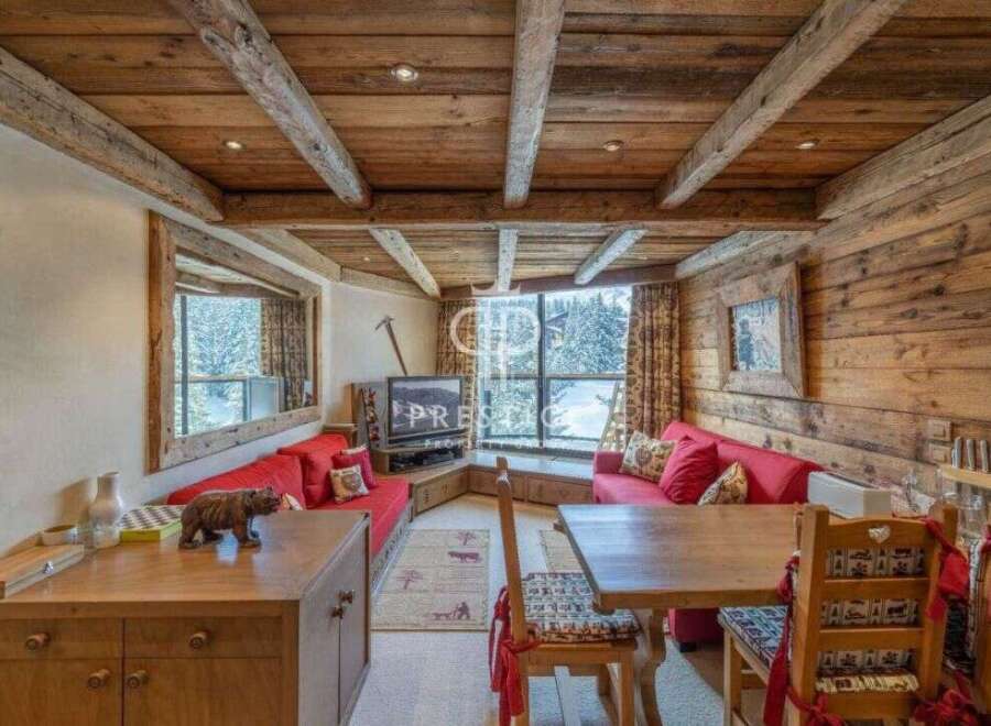 Situated in a quiet area in Courchevel 1850, this superb apartment consists of a sunny living/dining room with an open kitchen, corner space with bunk beds and a bathroom with a WC. There is also a south facing balcony with splendid mountain views, ski locker and a cellar.