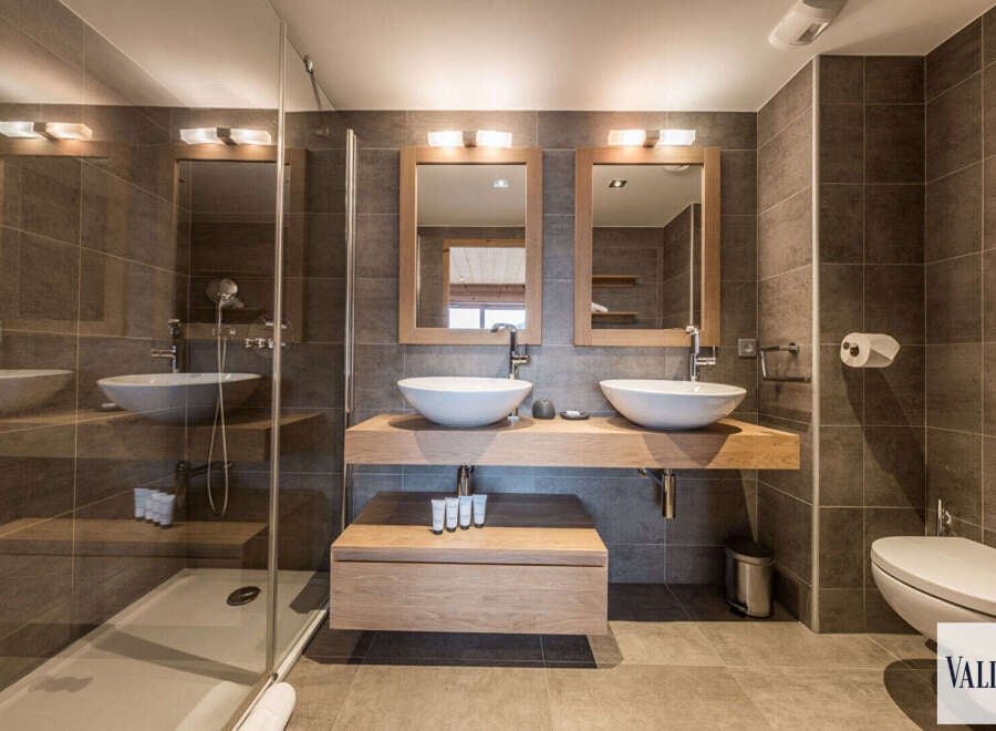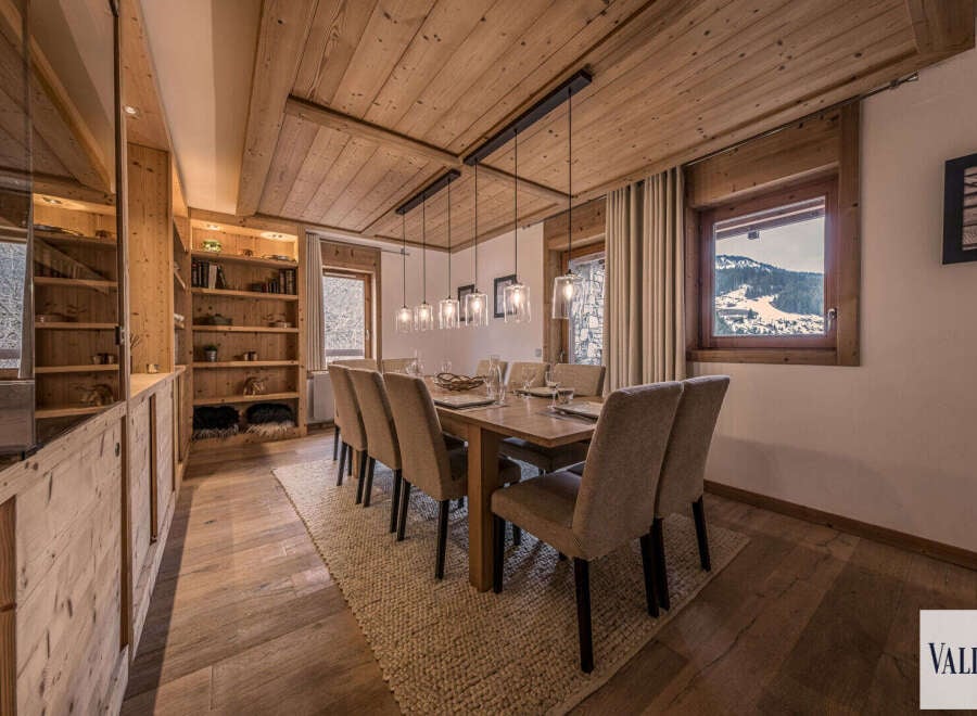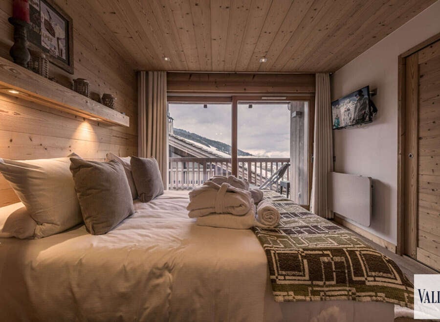 VALLAT exclusive! In a recent residence in Courchevel Moriond, discover this true alpine apartment, combining wood, stone and large bay windows with superb views of the mountains. Cozy and very warm, it has an exceptional living room with a fully equipped kitchen and a coffee-time area, a corner dining room with storage and a generous lounge area with central fireplace opening onto a sunny terrace and a balcony, with mountain and valley views. Night side, a Master-suite with its bathroom with a ...