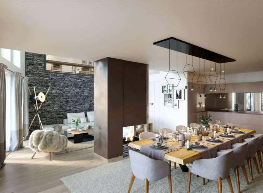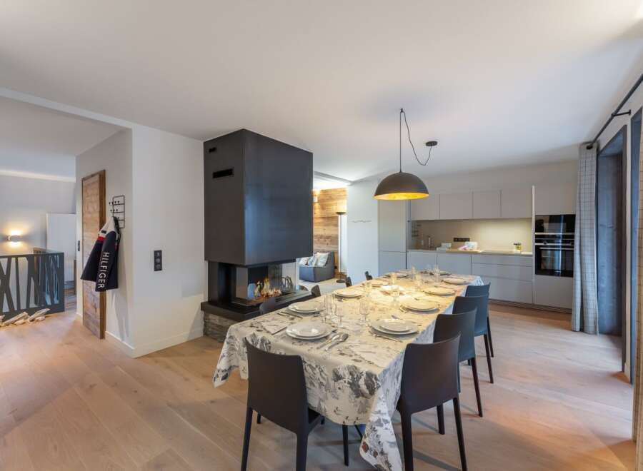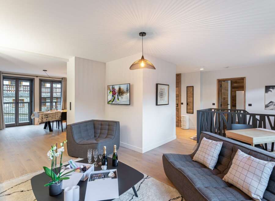 Located within one of the world's most sought-after alpine resorts, this 127.9 sqm duplex apartment offers four bedrooms, an east-west exposure, and beautifully balanced volumes designed for relaxed mountain living. Set on the ground floor of a well-maintained residence, it enjoys natural light throughout the day and open views over the surrounding alpine landscape.The living space is warm and inviting, centred around a fireplace and a fully equipped open-plan kitchen, ideal for gathering after ...