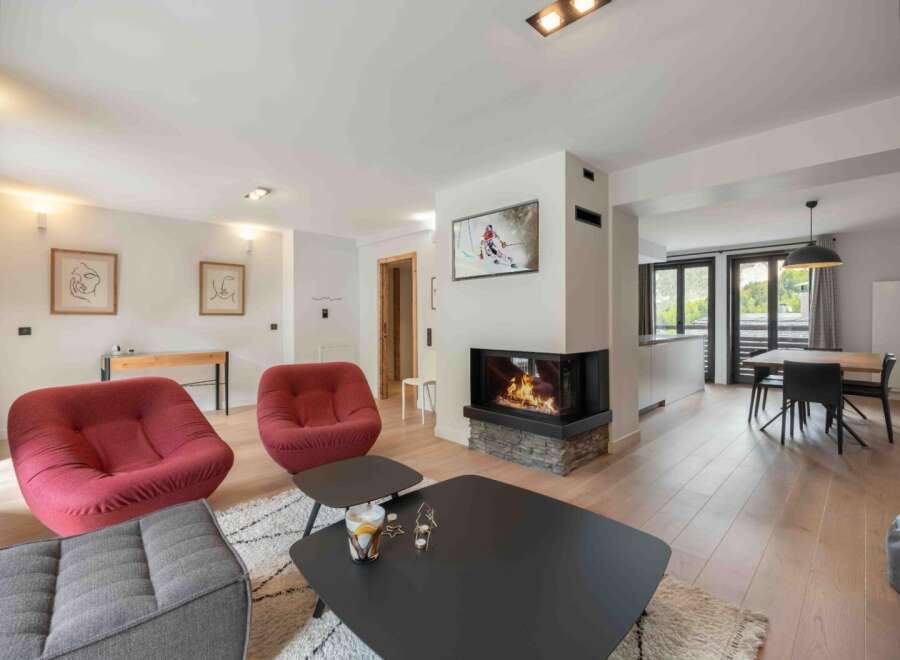 Located on the top floor of a residence, this elegant 164.4 sqm duplex apartment enjoys an east-west exposure and offers four bedrooms, creating a light-filled and beautifully balanced alpine home. With windows and balconies on both sides, natural light flows throughout the apartment from morning to evening, enhancing its warm and refined atmosphere.The main living space is designed for connection and comfort, centred around a fireplace that invites relaxed evenings after a day in the mountains....
