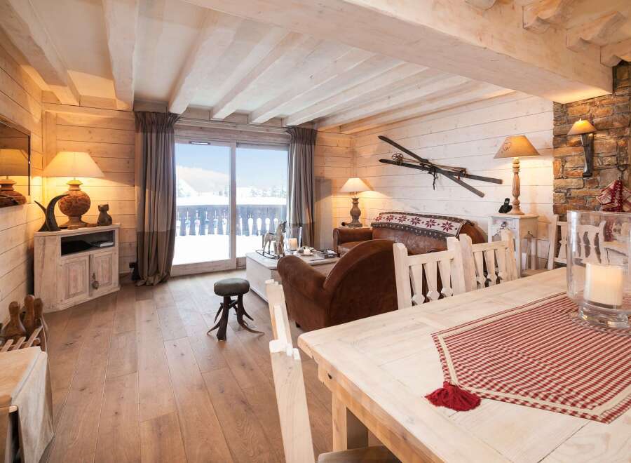 Located in a sought‑after residence in Courchevel 1850, this 70 m2 apartment offers a warm atmosphere enhanced by its wooden finishes. Its direct access to the Pralong ski slope makes ski departures and returns particularly convenient. The apartment accommodates up to six guests and features three bedrooms: two double bedrooms with en‑suite bathrooms, and a twin bedroom connected to a shower room. The main living area includes a fully equipped kitchen, a dining space, and a bright lounge opening...