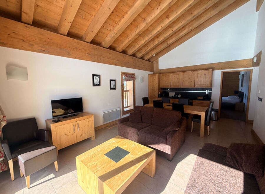 #The mountain at altitude# In Tignes Les Boisses, this apartment under lease of 4 rooms of 80m2 is part of an intimate tourist residence with swimming pool and relaxation area. The ski-in and ski-out departure extend the experience in the mountains, in an exceptional setting. The living room is organized around an open living room with fully equipped kitchen, designed as a place to share after the days at altitude. The harmonious and proportioned volumes offer a warm atmosphere. A balcony exte...