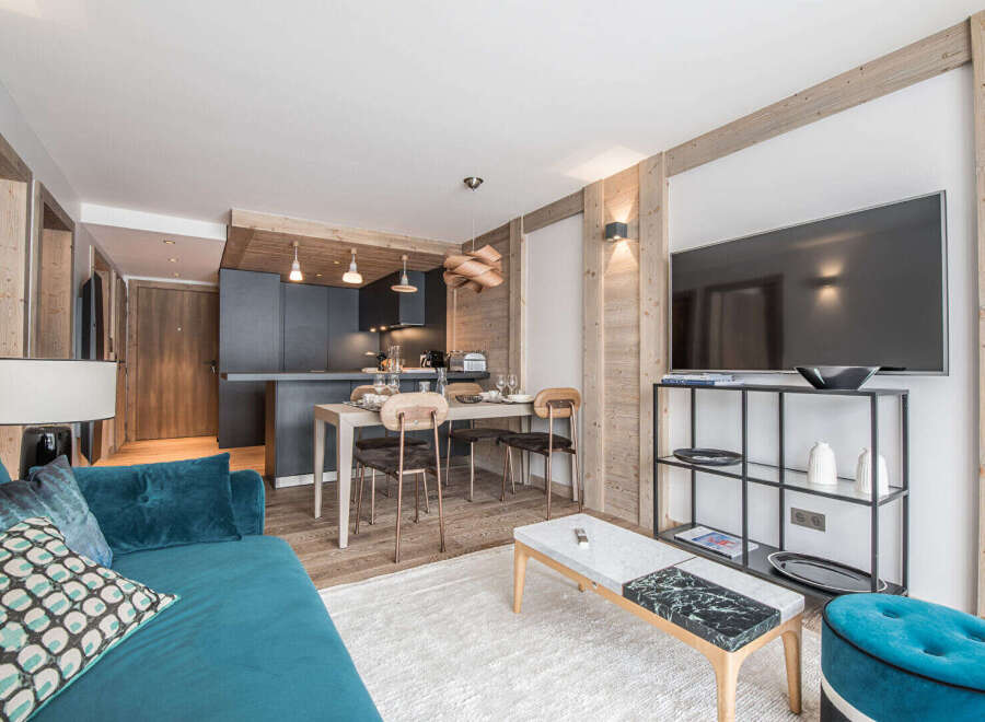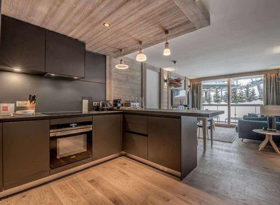 #Skis on my feet, facing the peaks# Nestled within an ultra high-end residence, truly ski-in/ski-out and in the heart of the village, this south-facing property reveals a rare and refined atmosphere. A private living space combining elegance, absolute comfort, and the art of mountain living. The contemporary, fully equipped kitchen opens seamlessly onto the living area, featuring a stylish bar extension that creates a warm and inviting space for entertaining after a day on the slopes. The master...