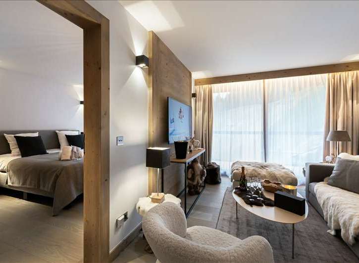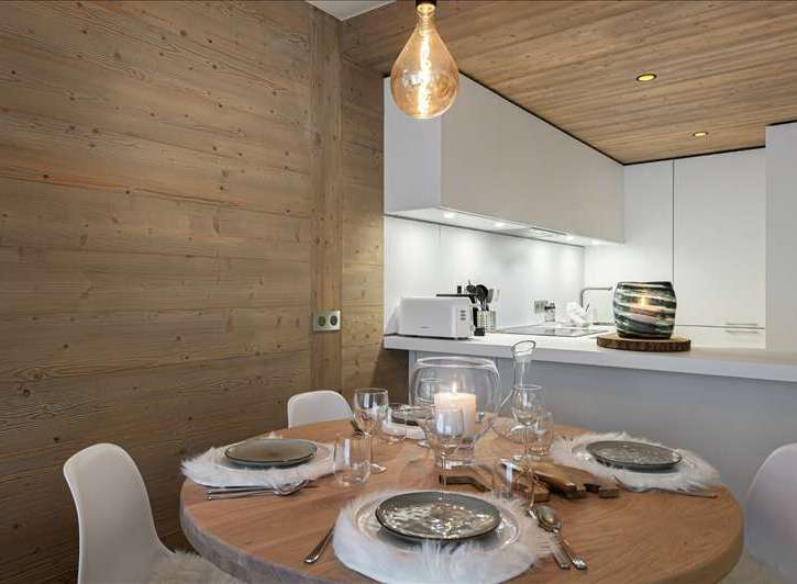 Apartment located in the heart of Courchevel village, on the 6th floor of a high-end residence, with quality materials, the property is composed of an equipped kitchen open onto the living room and a dining room. A double bedroom, a mountain corner with two bunk beds and a shower room complete this apartment and can accommodate up to 4 guests, ideal for families.The property is sold fully equipped and furnishedParking is available at an additional cost.